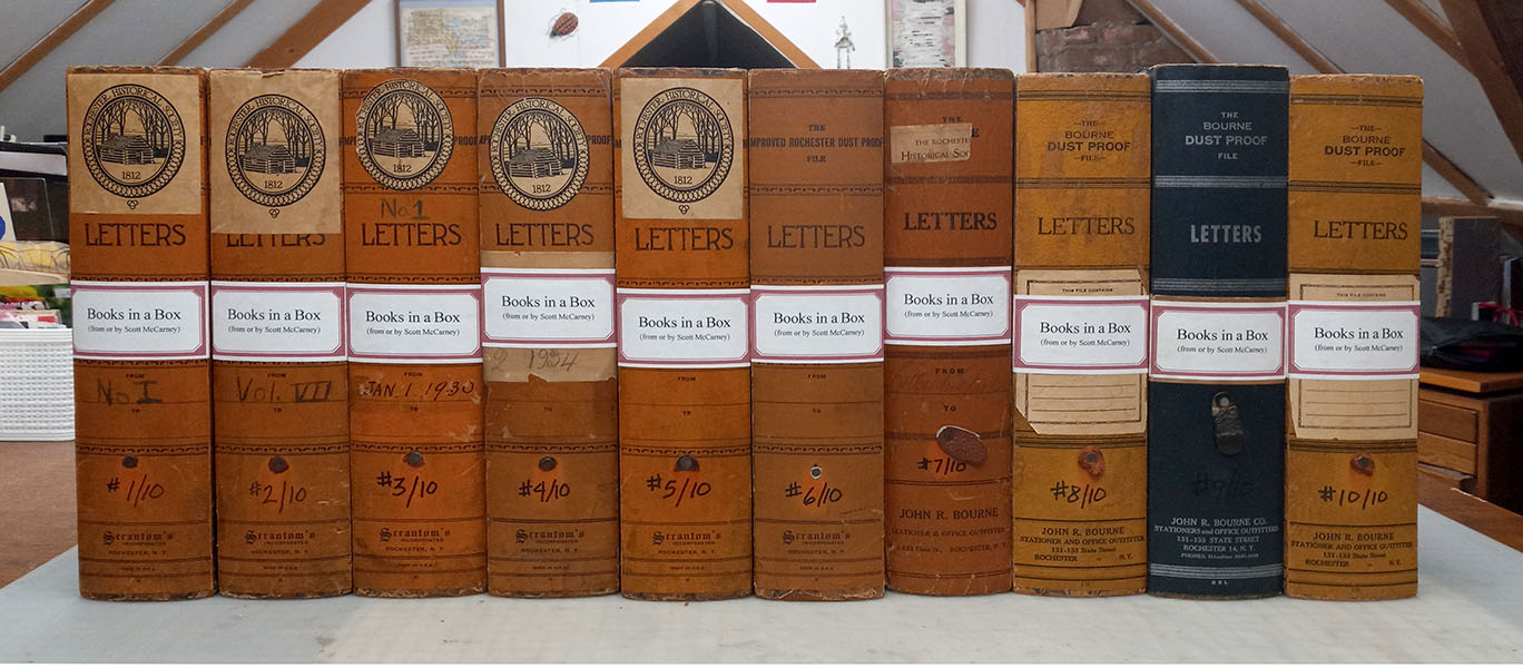 11 books housed in a vintage Merchants File Letters box manufactured for Scrantom, Wetmore & Co. in Rochester NY. Edition of 10. 2023
